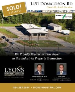 Roberts Oxygen Company Acquires New Greenville, SC Facility with Lyons Industrial Properties / CORFAC International. Greenville, SC – Lyons Industrial Properties / CORFAC International is pleased to have represented Roberts Oxygen Company, Inc. in the purchase of a 17,000-square-foot industrial facility at 1451 Donaldson Rd, Piedmont, SC, in Greenville County. The facility will serve as…
